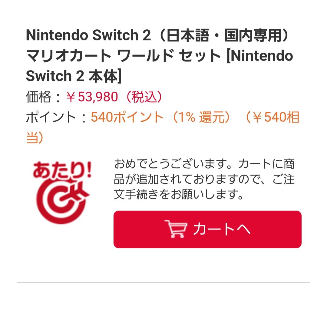 某Switch2当落X垢を見ると当選20%切ってる感じだったので、よく当てたなと(汗)